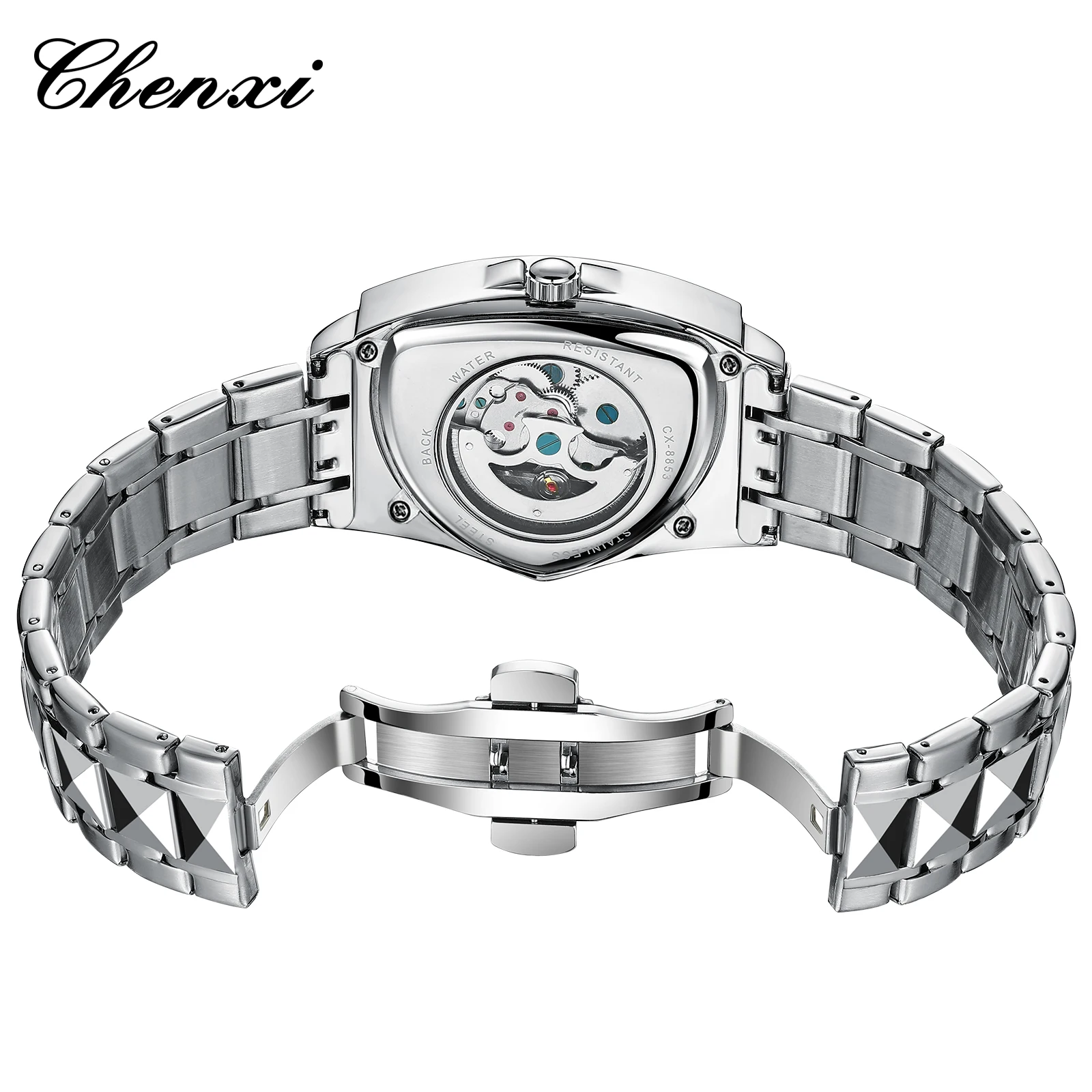 CHENXI Automatic Watch Man Mechanical Fashion Military Skeleton Hollow Waterproof Men’s Sport Watches Triangle Dial Wristwatch